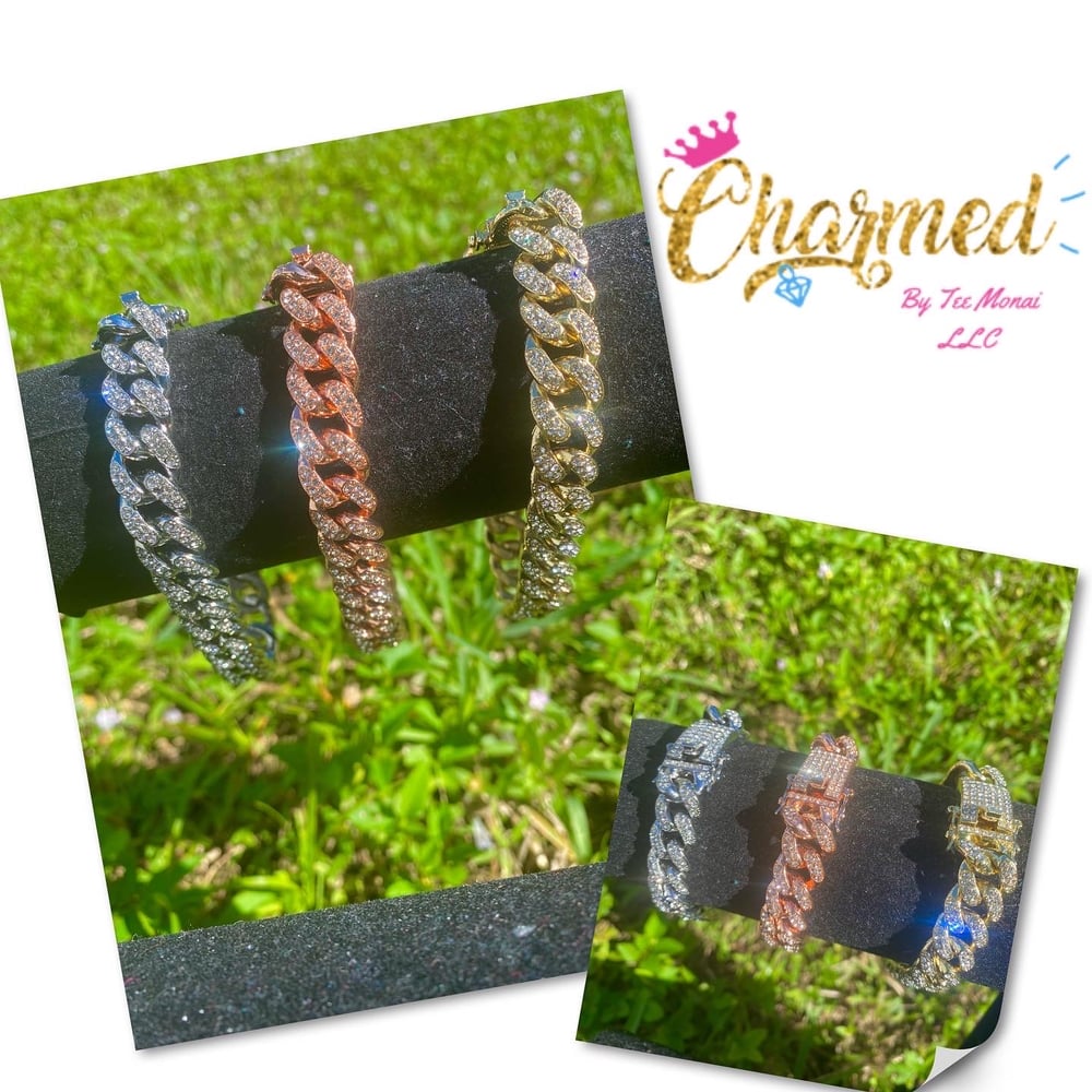 The Cuban pieces have tiny diamonds embedded inside the links. This is very durable material and has some weight. Sets include a necklace and bracelet, anklets are not included however, they are available for purchase separately. Sets are available in both silver and gold. Anklets are available in silver , gold & rose gold. Yes they can be purchased separately . Please see drop down menu.